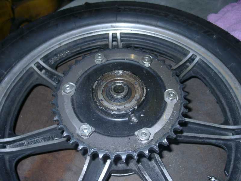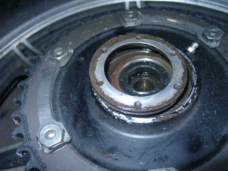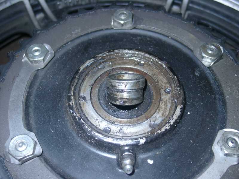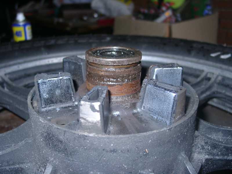 Abstandshülse geht normalerweise ganz leicht raus, nicht verlieren und Einbaulage merken ! |
