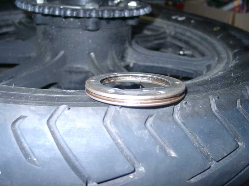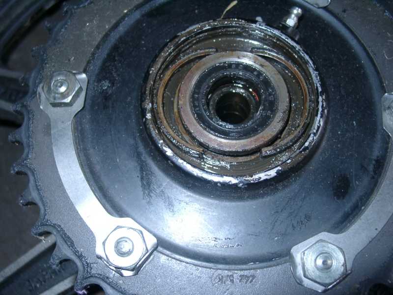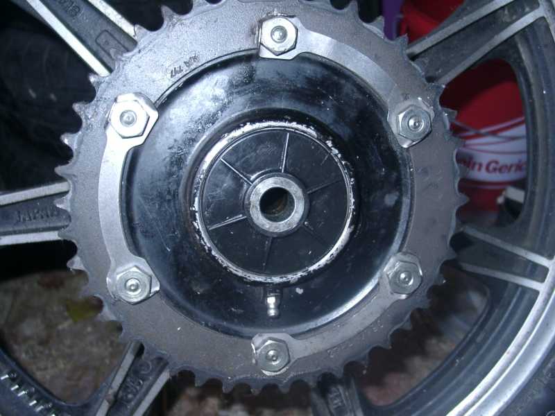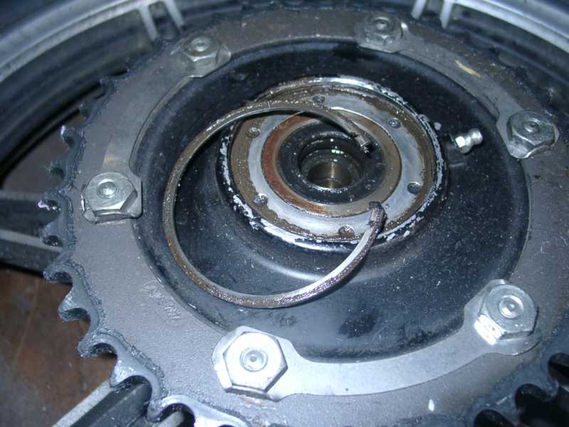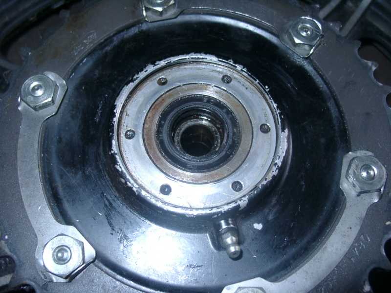 Kettenblatträger ist wieder drauf - Halbmonde sind wieder montiert - zweiter O-Ring kommt oben drauf. Einige Leute berichten, daß sie Probleme beim Einbau der Halbmonde hatten, diverse Tricks kann man im www.sr500.de Forum nachlesen |